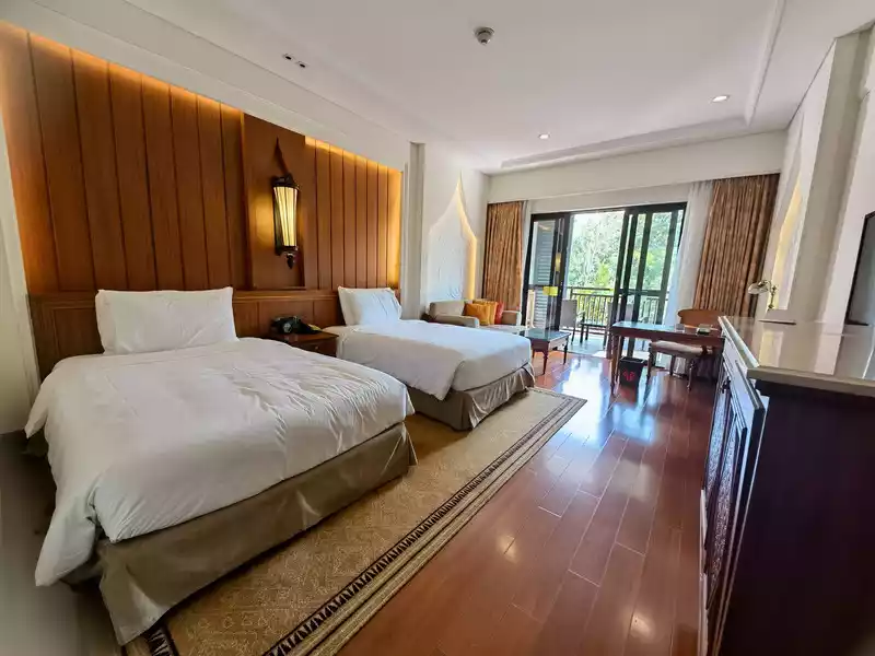 The Thai palace-style lobby exudes a rich sense of ethnic charm, featuring a majestic pagoda, a vast tropical garden, a breakfast room with peacocks, temples, and rice paddies. The restaurant also features song and dance performances, giving it the feel of a Dai village. The sound of gurgling water lingers in your ears, and strolling through the rainforest gardens is a relaxing experience! The hotel also offers attentive butler service via WeChat, ensuring immediate response to any requests.