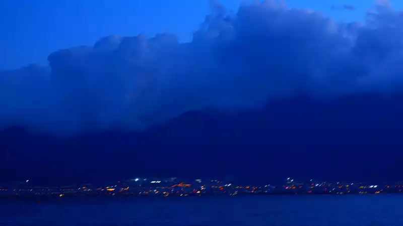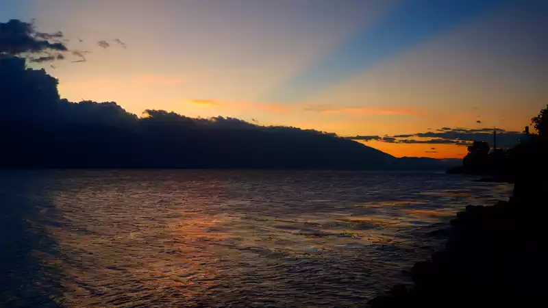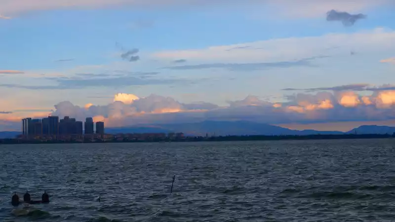 In the evening, we saw golden-rimmed white clouds by Erhai Lake, reflecting the distant sunset glow. It was beautiful and spectacular.