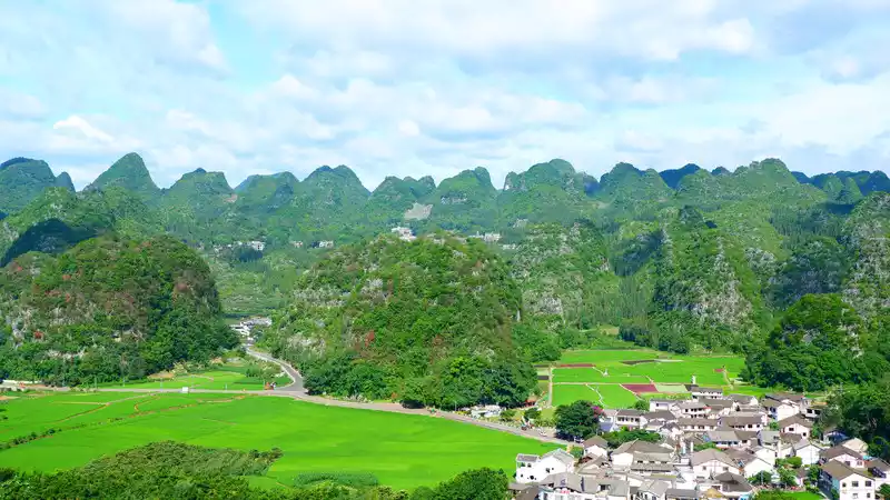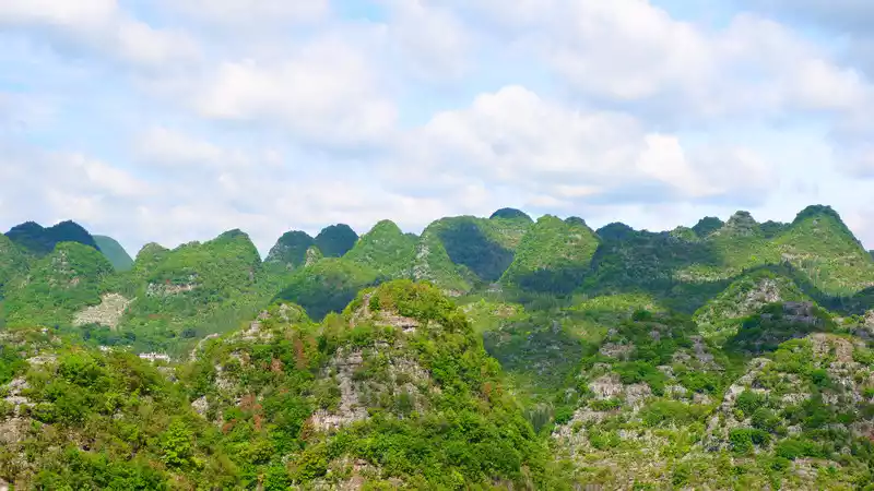 In addition to seeing the Sky Eye from the observation deck, the surrounding scenery is also very beautiful. The typical karst landform stalactite peaks are arranged in a continuous line and are quite spectacular.