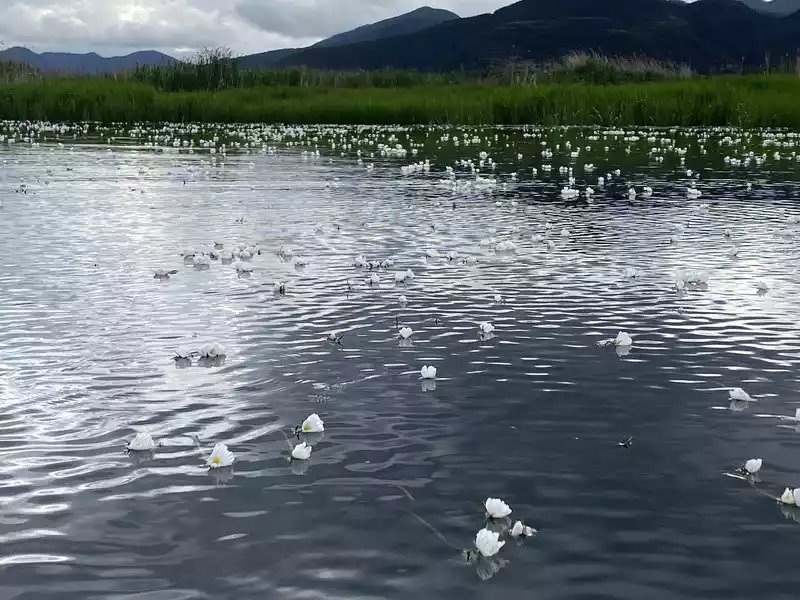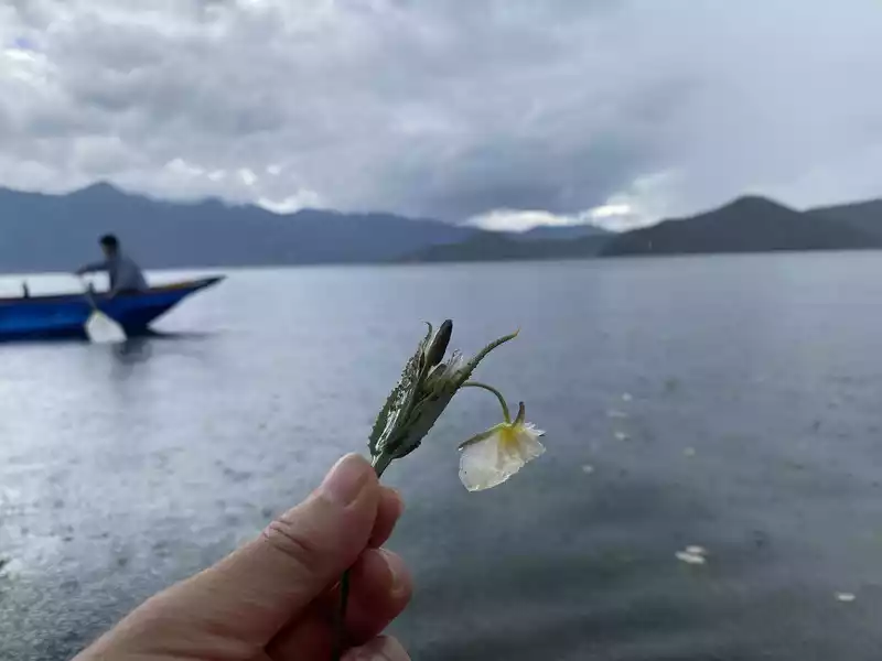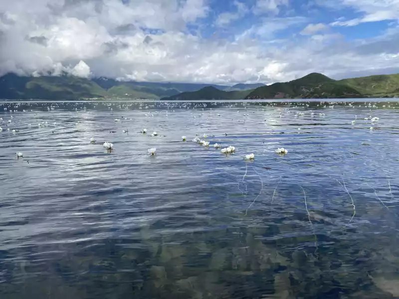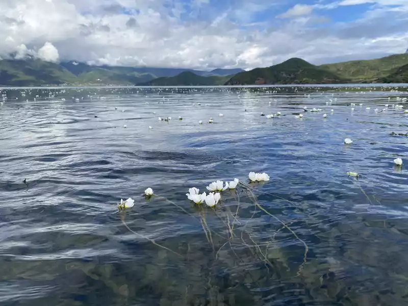 I must point out here that the sea of flowers in Lugu Lake is definitely the most beautiful in the morning, and the best time is 9 o'clock. What we saw in the afternoon were all wilted and withered flowers. It was so disappointing. It shows that I didn't do my homework carefully enough. I left my phone number when I got off the boat, and planned to go back to the flower sea the next day if it didn't rain.