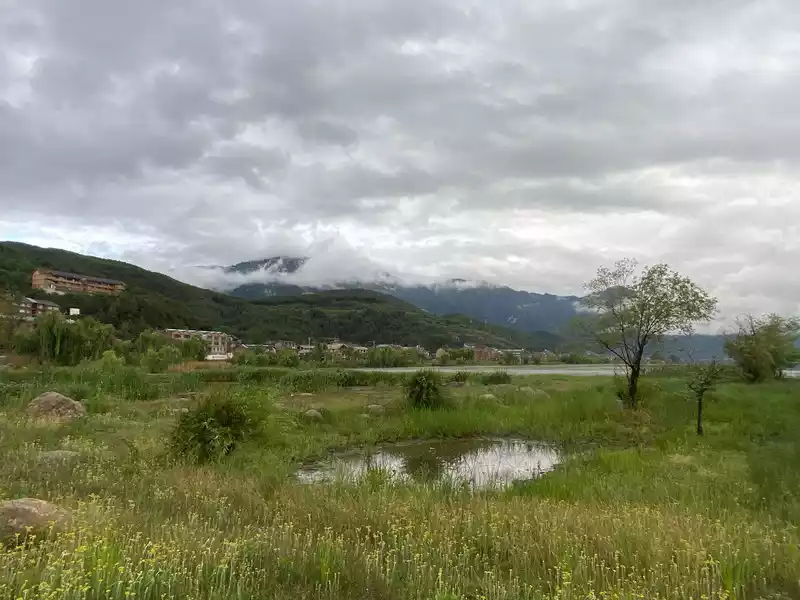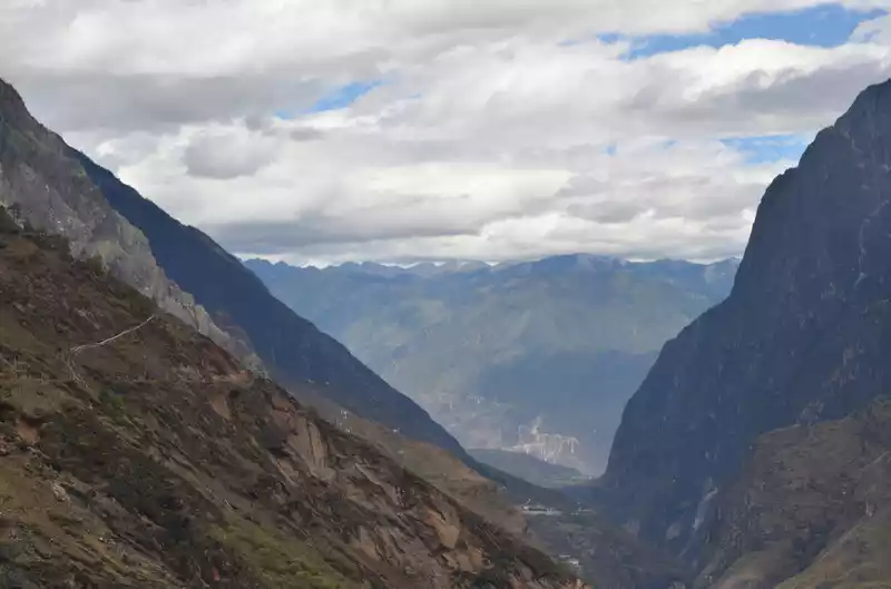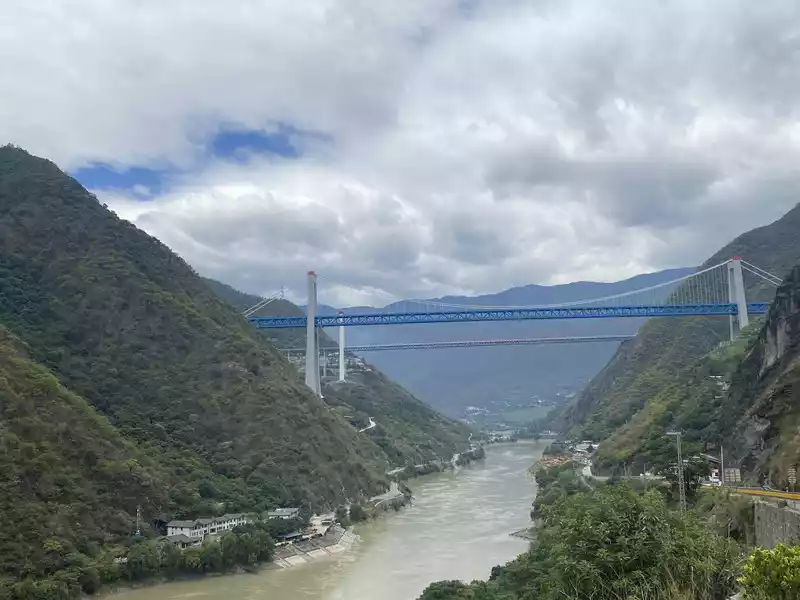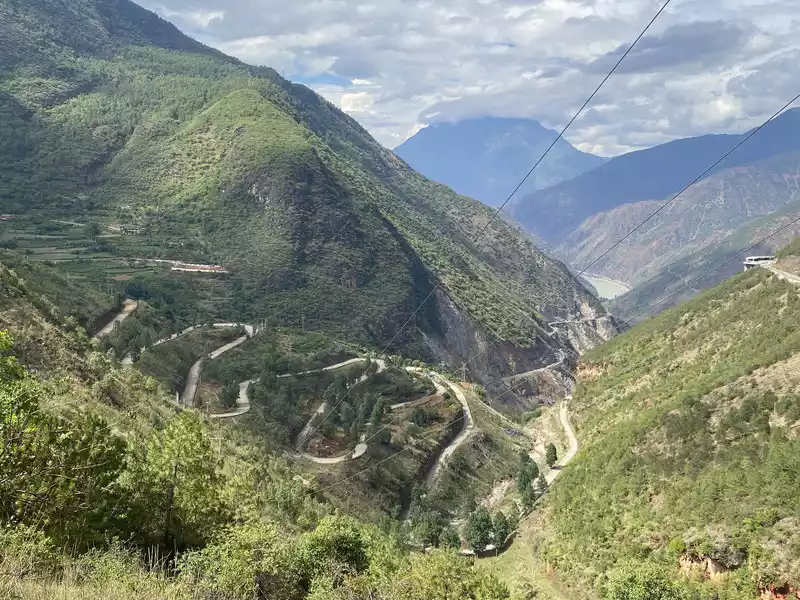 Coming from Lugu Lake, there's a viewing platform a little way off from the Eighteen Bends of Lining where you can stop and see the Jinsha River's twists and turns. However, our car had a minor incident, so we didn't stop and missed it.