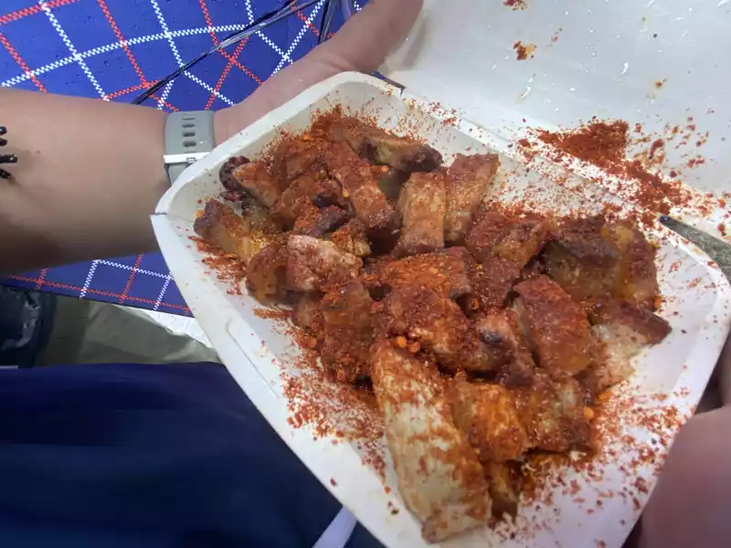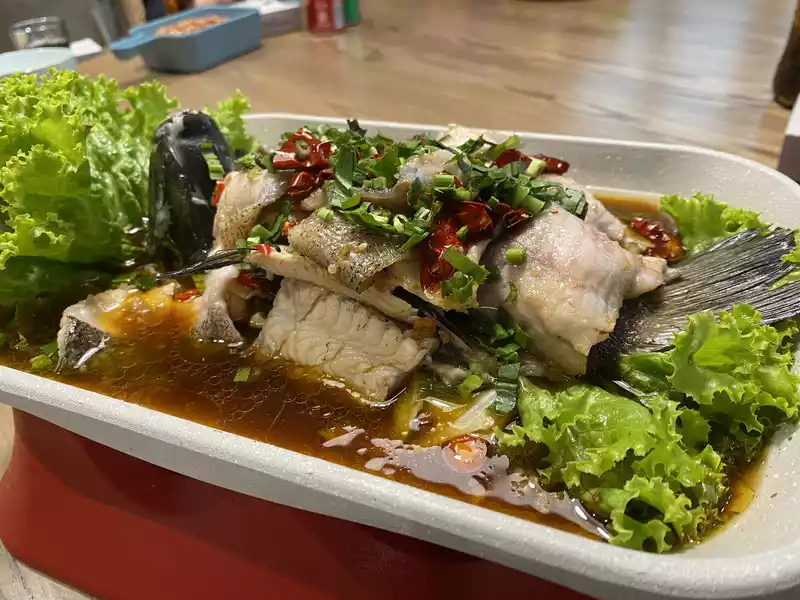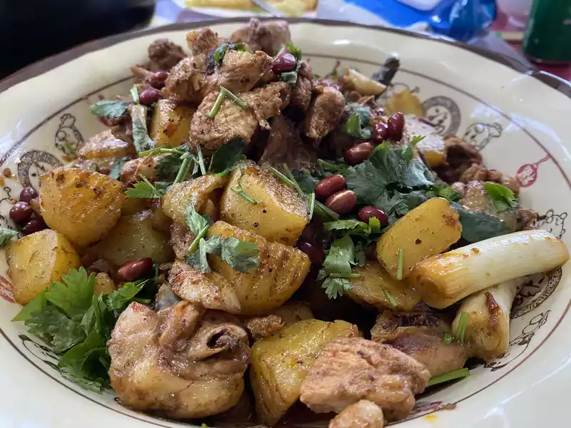 In the evening, we tried the steam pot chicken recommended by the hotel, which was okay. The next day, we found a restaurant on our own and it was even better.