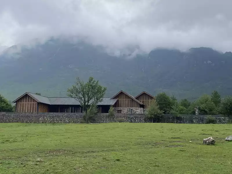 The majestic Jade Dragon Snow Mountain stands tall and resilient in front of Banshanju Inn.