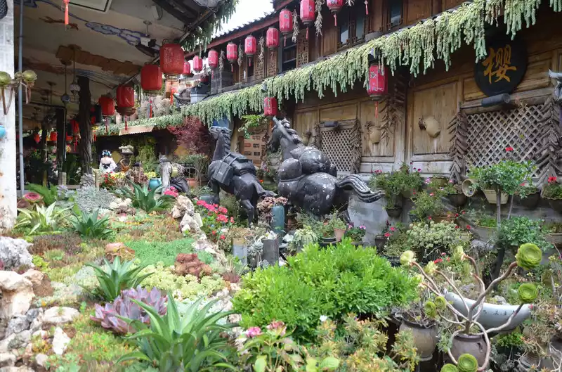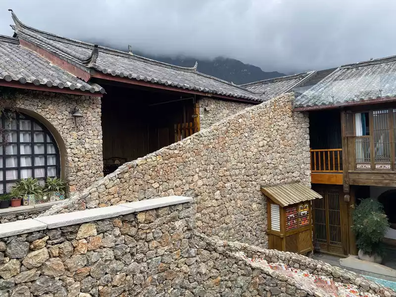 Mufu Palace (admission 40 yuan/person), officially known as the Mu's Chieftain's Mansion, was originally the government office of the Mu's, the hereditary chieftains of Lijiang. It was "modified in the Yuan Dynasty and flourished in the Ming Dynasty." Construction of the main building began during the Ming Dynasty (1382-1390) during the reign of Mu De. It was rebuilt in 1998, and the Ancient City Museum was established within the palace. The Mu Mansion fully reflects the elegant style and temperament of Ming Dynasty Central Plains architecture, while retaining the lingering charm of the rustic and rugged architecture of the Tang and Song dynasties. The layout of the mansion, with its crisscrossing canals and flowing water, bears witness to the spirit of traditional Naxi culture. The central axis of the Mu Mansion stretches 369 meters, and it faces east, "facing the rising sun and absorbing the energy of wood." To its left lies Qinglong (Yulong Mountain), to its right lies Baihu (Hushan Mountain), with Xuanwu (Shizi Mountain) at its back. To the southeast lies Guishan, with Sheshan facing the pass. Embracing the ancient city, the Mu Mansion features 15 buildings along its central axis, including the Loyalty Archway, Yimen Gate, the Front Meeting Hall, Wanjuan Tower, the Dharma Protector Hall, Guangbi Tower, Yuyin Tower, the Sanqing Hall, side halls, attics, a stage, a street-crossing building, courtyards, corridors, and a palace post station, totaling 162 rooms of various sizes. Eleven plaques bestowed by successive emperors hang in the yamen, inscribed with words such as "loyalty and righteousness," "serving the country with sincerity," and "pacifying the border."