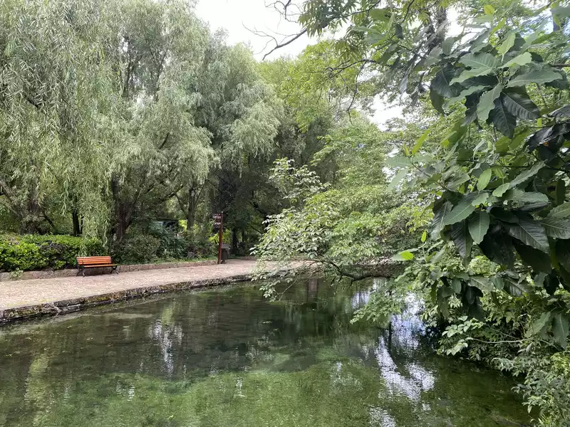 The open-air restaurant along the lake looks comfortable, near the Dashi Bridge.