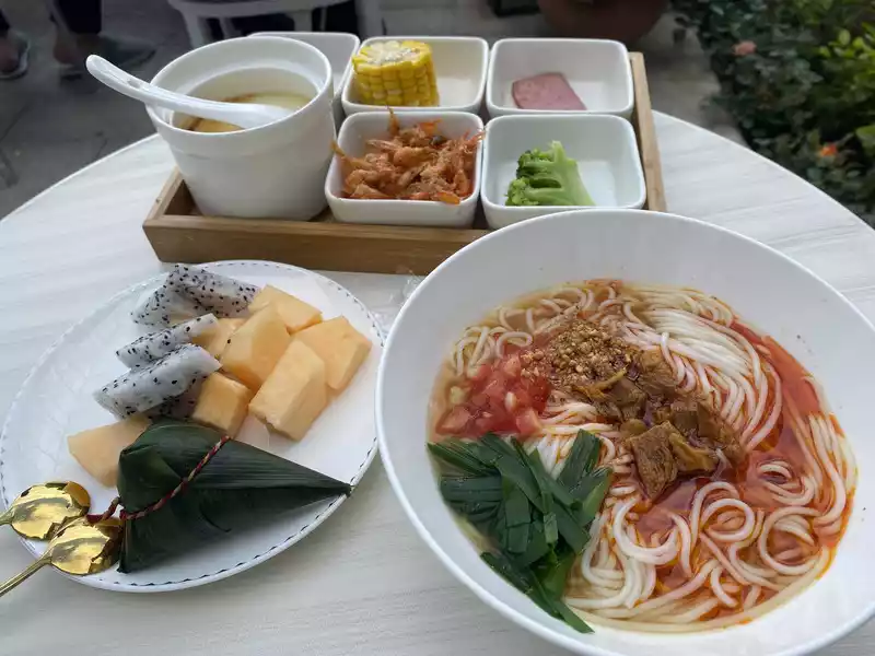 After picking up the car at the airport, I met up with my family and friends and drove directly to the B&B. After parking the car and settling into the room, I walked to Yunxueli Restaurant, which the hotel manager had recommended, for lunch.