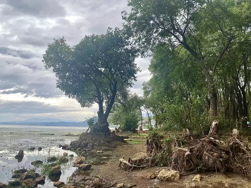 At noon, I had lunch at a restaurant called "Yuwei" near the intersection of the Yalu Line. The Pu'er tea wine they had was delicious, with almost no alcohol taste. I even bought a pound of it before leaving. Actually, after passing the Yalu Line intersection, there are many small restaurants along the lake. It's very relaxing to enjoy a small dish by the lake while enjoying the breeze.