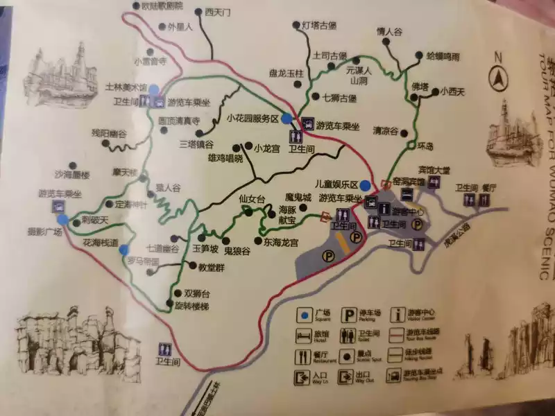 To enter the scenic spot, choose to take a car up to the highest point, Piercing the Sky, then walk up the spiral staircase, then pass through the Ape Man Valley to the small garden service area, and then go to the Shrimp Mingyu and Qingliang Valley back to the visitor center.