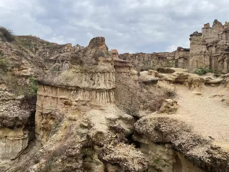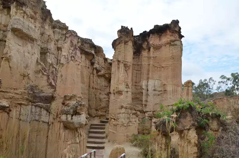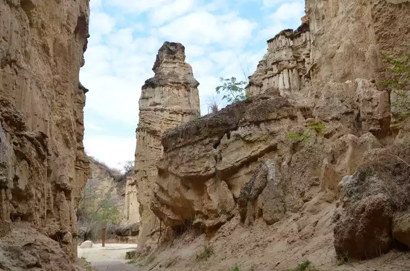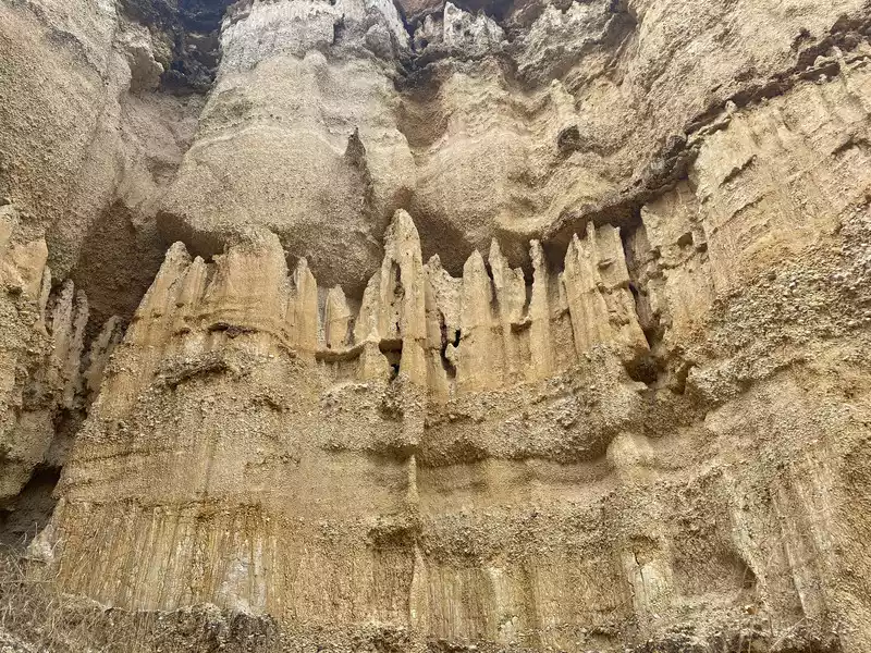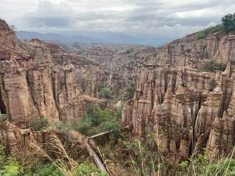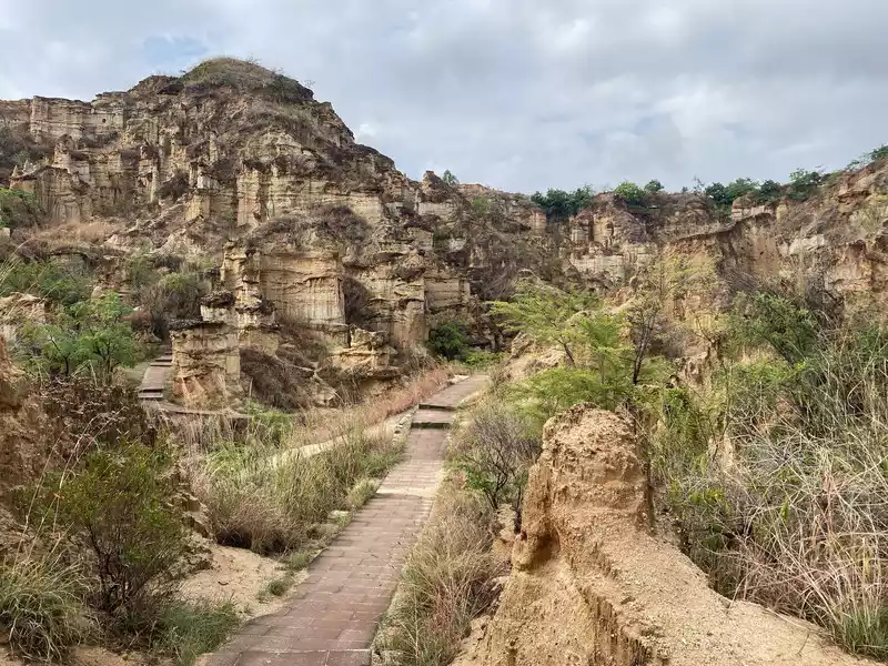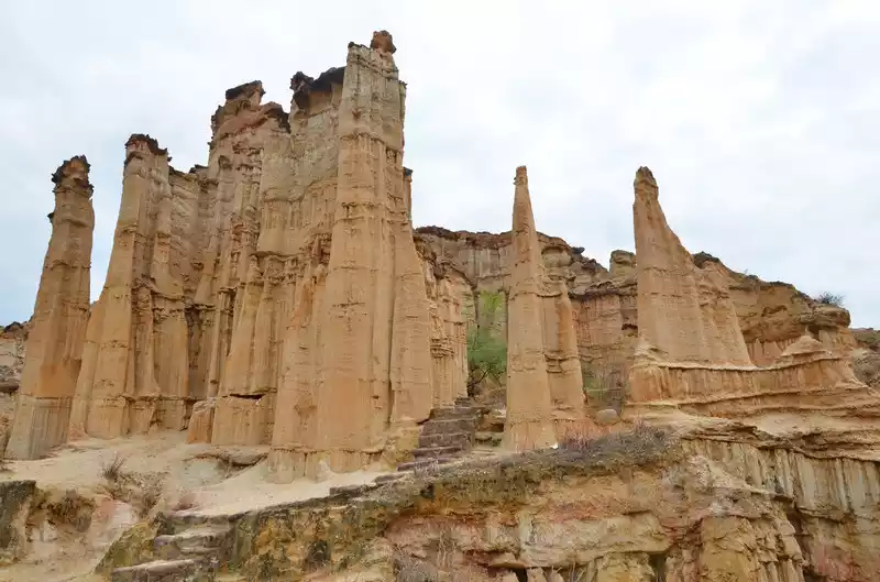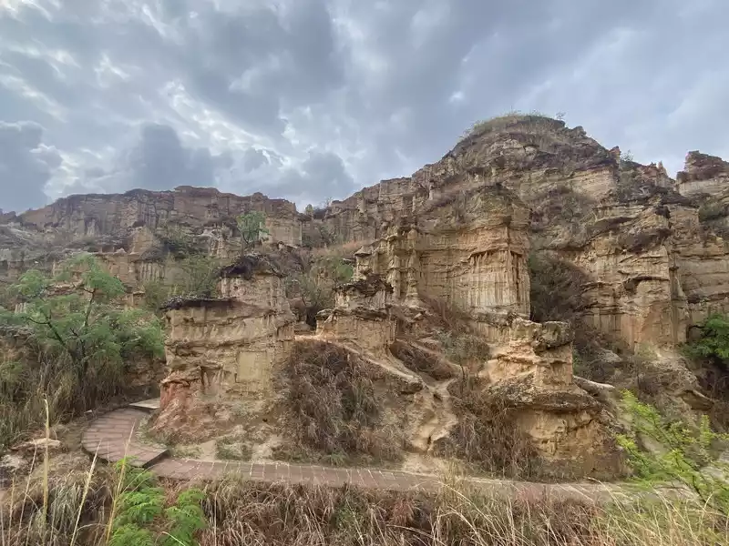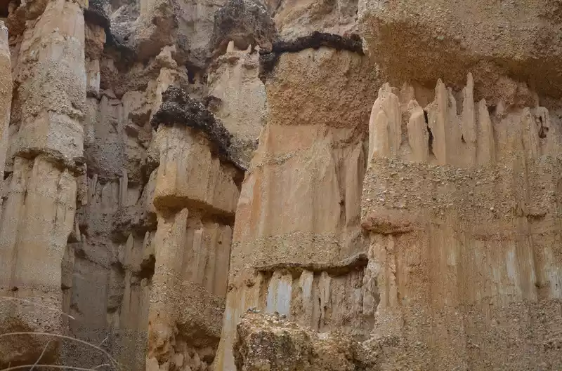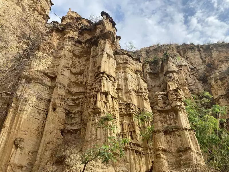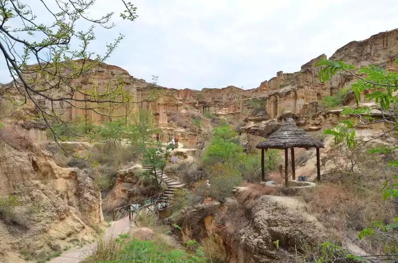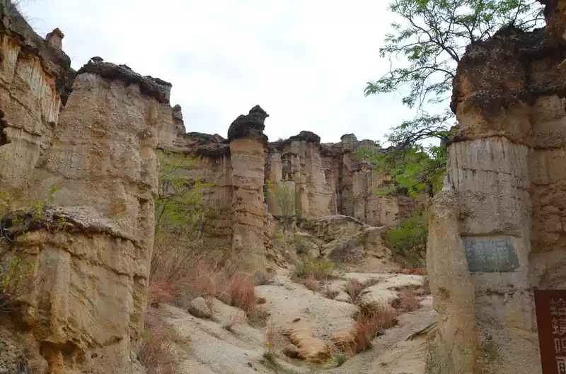 The Hutiaotan soil forest covers a total area of 6 square kilometers, and its shapes are mainly castle-shaped, screen-shaped, curtain-shaped, and column-shaped. Various forms of soil pillars are scattered vertically and horizontally, up to 42 meters high, in colors such as red, yellow, white, brown, etc. Looking from a distance, the Hutiao Beach is lined with thousands of peaks, criss-crossed ravines, desolate and rough, like an abandoned castle or a group of huge artistic sculptures.