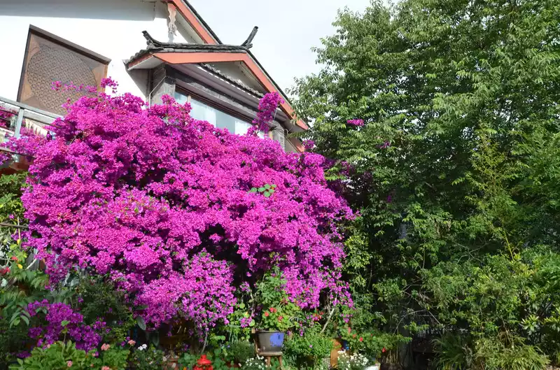 We were exhausted after leaving Mufu, so we went back to the hotel for a short nap before heading out for food at 8 a.m. A large bougainvillea tree, a beautiful sight that came to us without us noticing.
