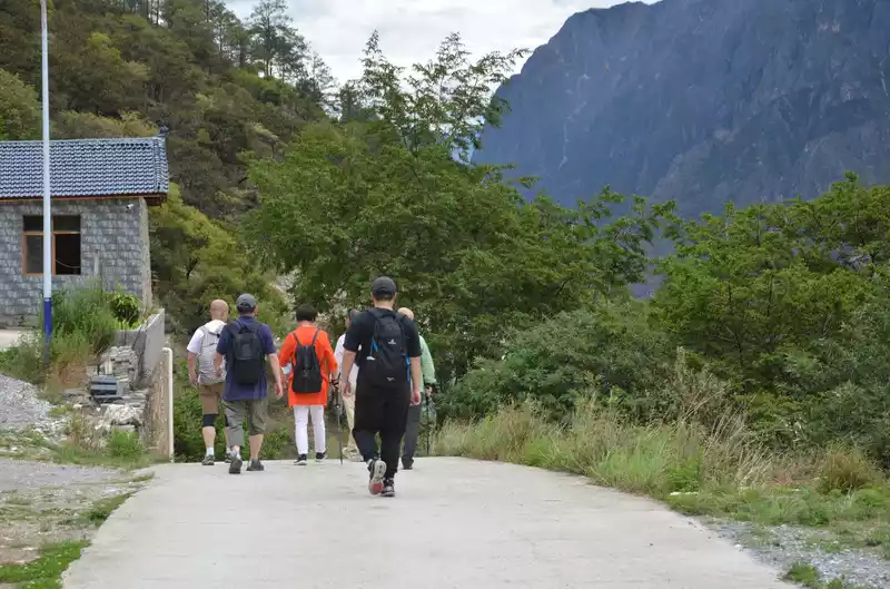 Our route was to hike from the Tea Horse Inn to the Banshanju Inn near the halfway point. It was a relatively easy hike, with mostly flat terrain. The first section is a cement road.
