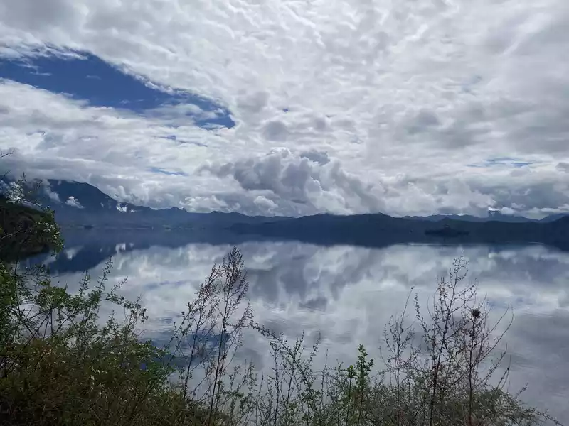 The village is full of frame houses for rent, as well as many B&Bs that are being renovated in full swing. The Yunnan section of the village is thriving with B&Bs, and the local government supports it. In contrast, the Sichuan section is peaceful and tranquil, with a focus on tranquility. Today's itinerary is a clockwise tour around Lugu Lake, but if you depart around 9 a.m., we recommend taking a boat tour to see the sea of grass and flowers (the pier address is detailed later in the article). Then, travel counterclockwise from the Walking Marriage Bridge, as you'll be facing the sun all the way. When visiting Lugu Lake, you can choose to stop wherever you like, and there's not much difference between the various stops.