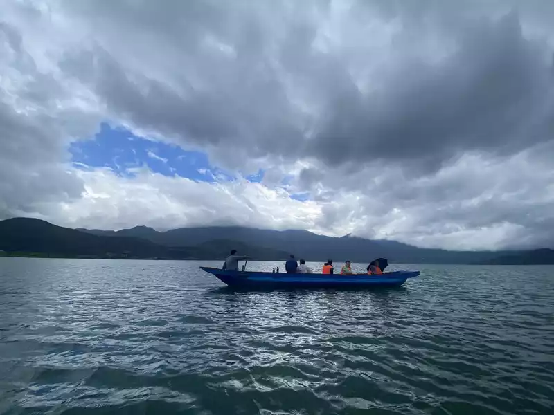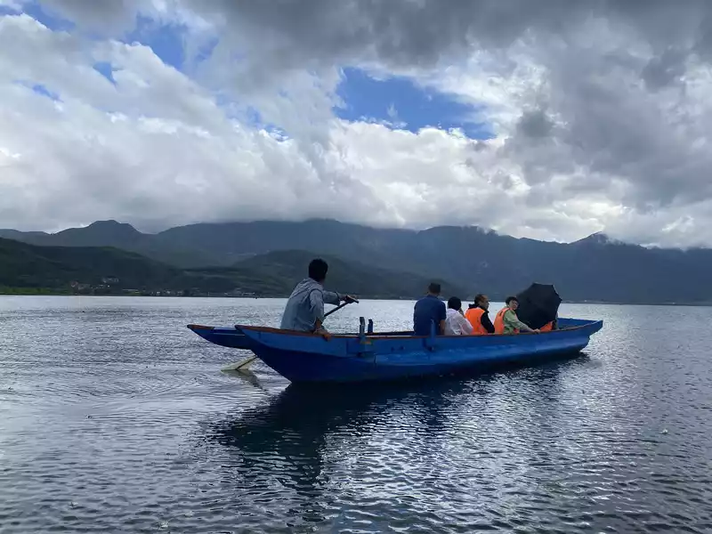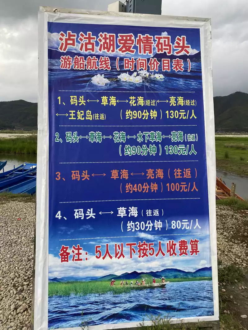 Because the sun was very strong, everyone decided to go back to the hotel for a nap. In the afternoon, at the enthusiastic recommendation of the hotel waiter, we went to the pier to take a boat. If you are driving, we still recommend this pier. Navigate to Lugu Lake Love Pier. The price is negotiable. A boat can accommodate a maximum of 5-6 people. We took two boats for 9 people.