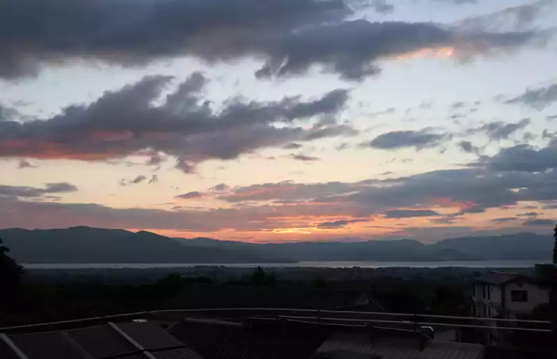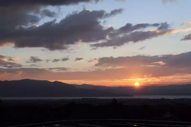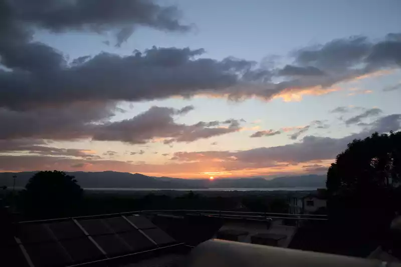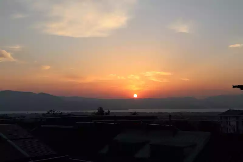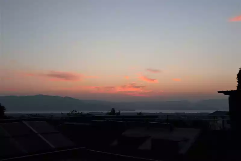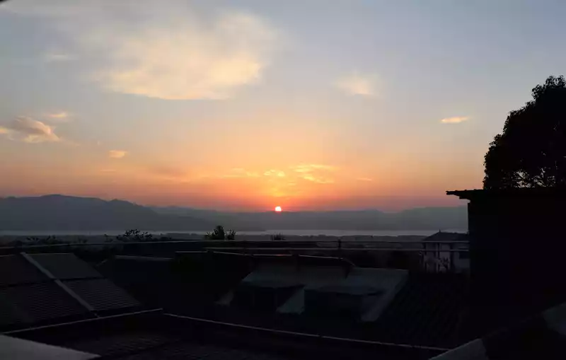 I slept well and woke up early. Seeing the sky was getting light outside the window, I got up immediately. A moment later, a red glow appeared on the horizon. It was 6:31.