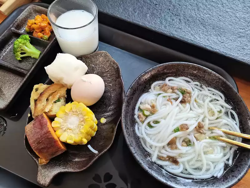 The hotel breakfast is simple, with one serving per person. The only choice is a bowl of rice noodles or rice vermicelli.