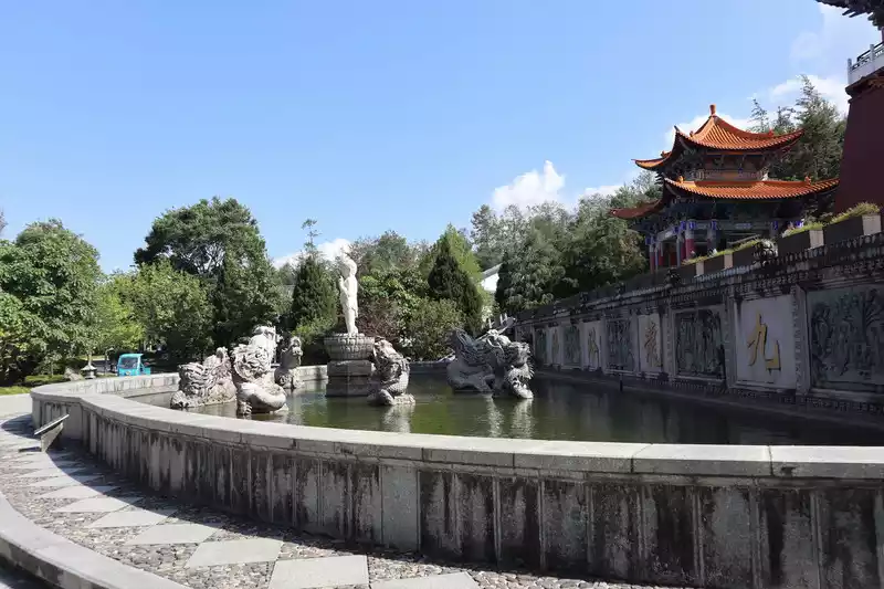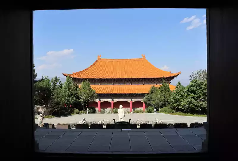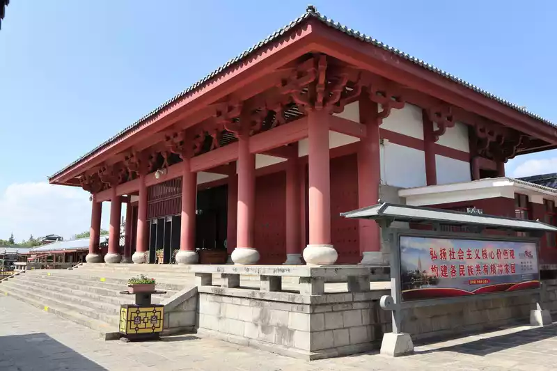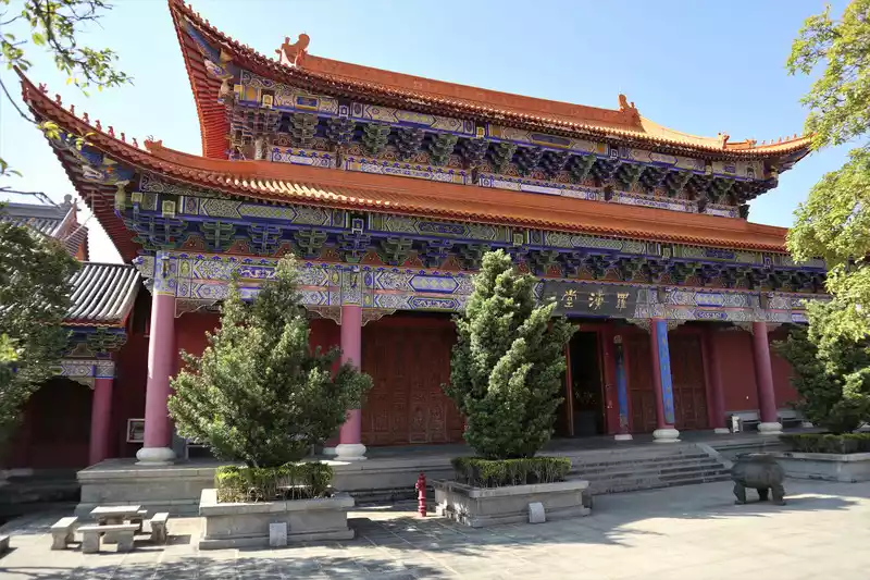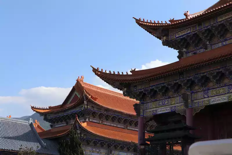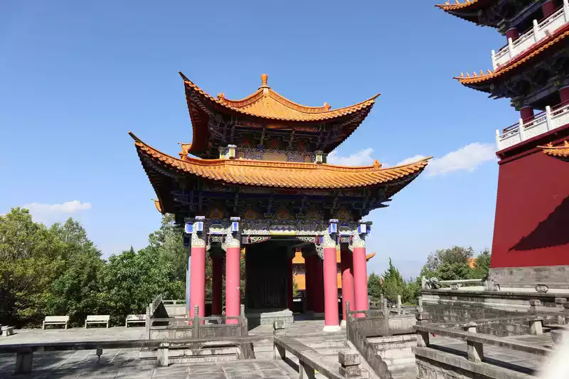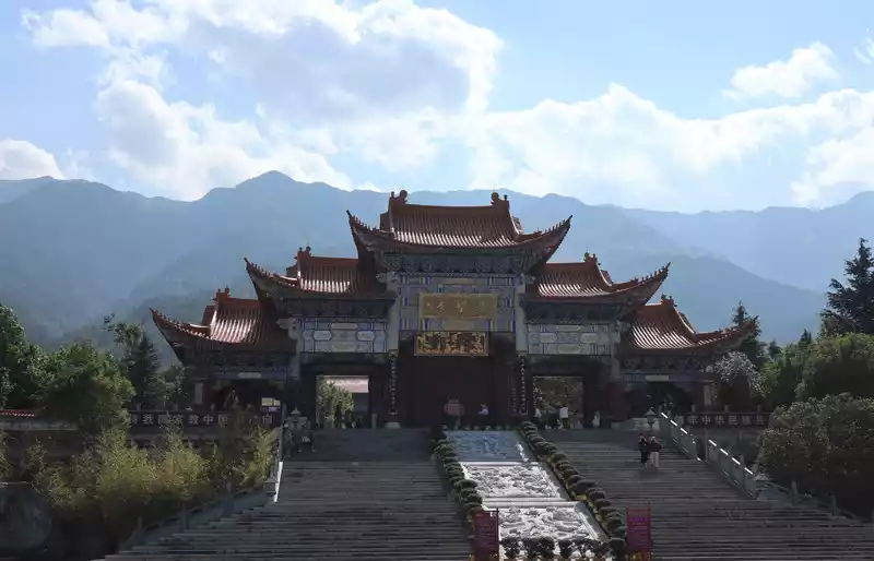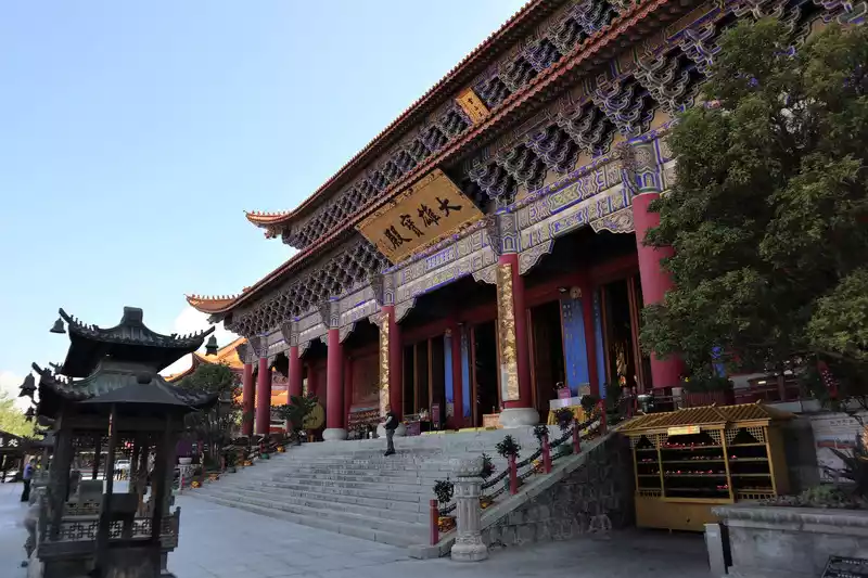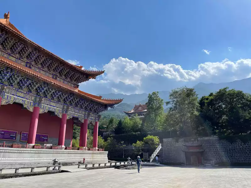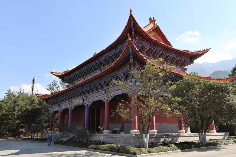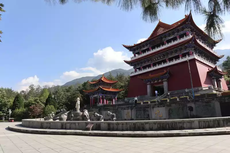 The lush Cangshan Mountain stretches endlessly with undulating peaks. The Main Hall, modeled after the Hall of Supreme Harmony in the Forbidden City in Beijing, has double eaves and nine bays, a three-tiered platform, is 51.7 meters wide and 26 meters high. It is the highest-ranking building in Chongsheng Temple and is located in the center of the temple.