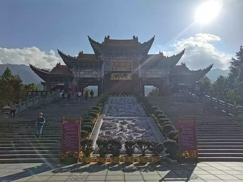 On such a beautiful day, I was surprised to find the Gantong Cableway out of service. Feeling disappointed, I entered the Geopark for a look and climbed several steps to Gantong Temple. Gantong Temple, founded by the eminent monk Li Chengmei in the early Tang Dynasty, is located at the southern foot of Shengying Peak in Cangshan Mountain, between Dali Ancient City and Xiaguan. Backed by the perpetually snow-capped Cangshan Mountain and facing the vast, misty Erhai Lake dotted with white sails, Gantong Temple, also known as Dangshan Temple, embodies the spiritual energy of heaven and earth.