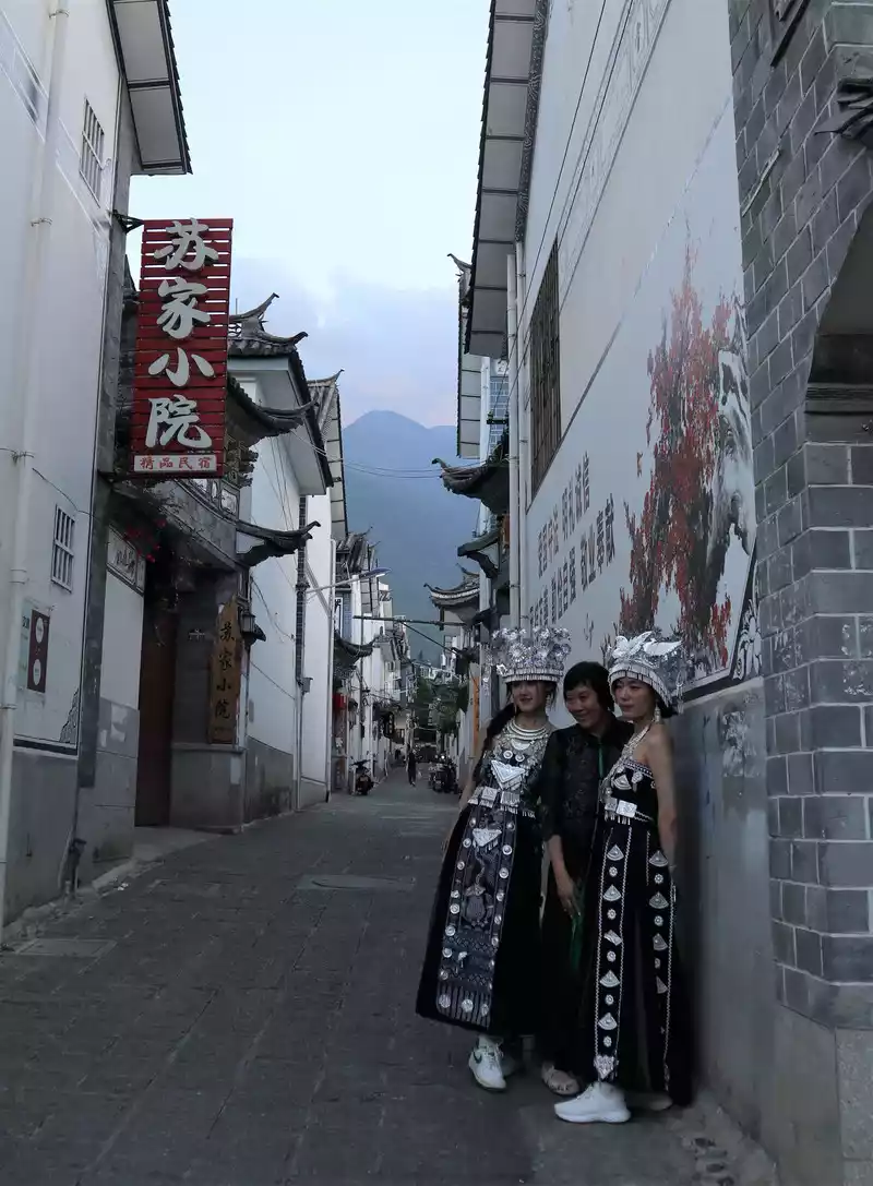 When you come to Dali, of course you must visit the ancient town. So we simply had dinner in the ancient town, killing two birds with one stone. The hotel is 1.7 kilometers away from the south gate of the ancient town (on foot), which is a bit far, so the Bai ethnic minority guy from the hotel drove us there (intimate service, free of charge).
