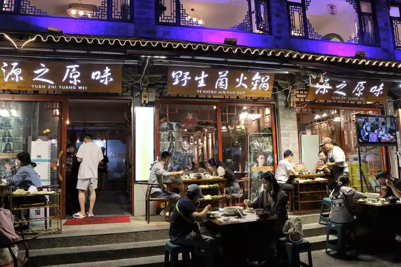 Following the directions of the Bai ethnic minority guy at the hotel, we went straight to this wild mushroom hotpot restaurant. The restaurant was crowded with diners inside and outside, and business was booming.