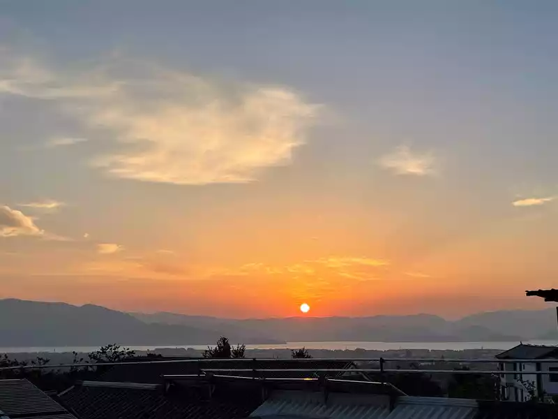 Anyue Linjianyin Resort is located at the foot of Cangshan Mountain. The room windows face east, facing Erhai Lake, the direction of the rising sun. You can see Erhai Lake and the sunrise from your door. (May 24, 2023)