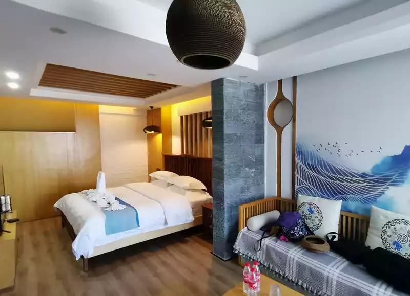 Our room was on the third floor, and the height was not high enough to see the scenery (the height of the whole building was not high enough either). The Erhai Lake in front of us appeared as a narrow line. The room was amazing, a family suite with two master bedrooms, 75 square meters, a very large suite that can accommodate 4 people. The price was just over 500, which is really good value for money. There are four floors upstairs, with only one suite of 90 square meters, known as the 360-degree view suite of Cangshan Mountain and Erhai Lake.