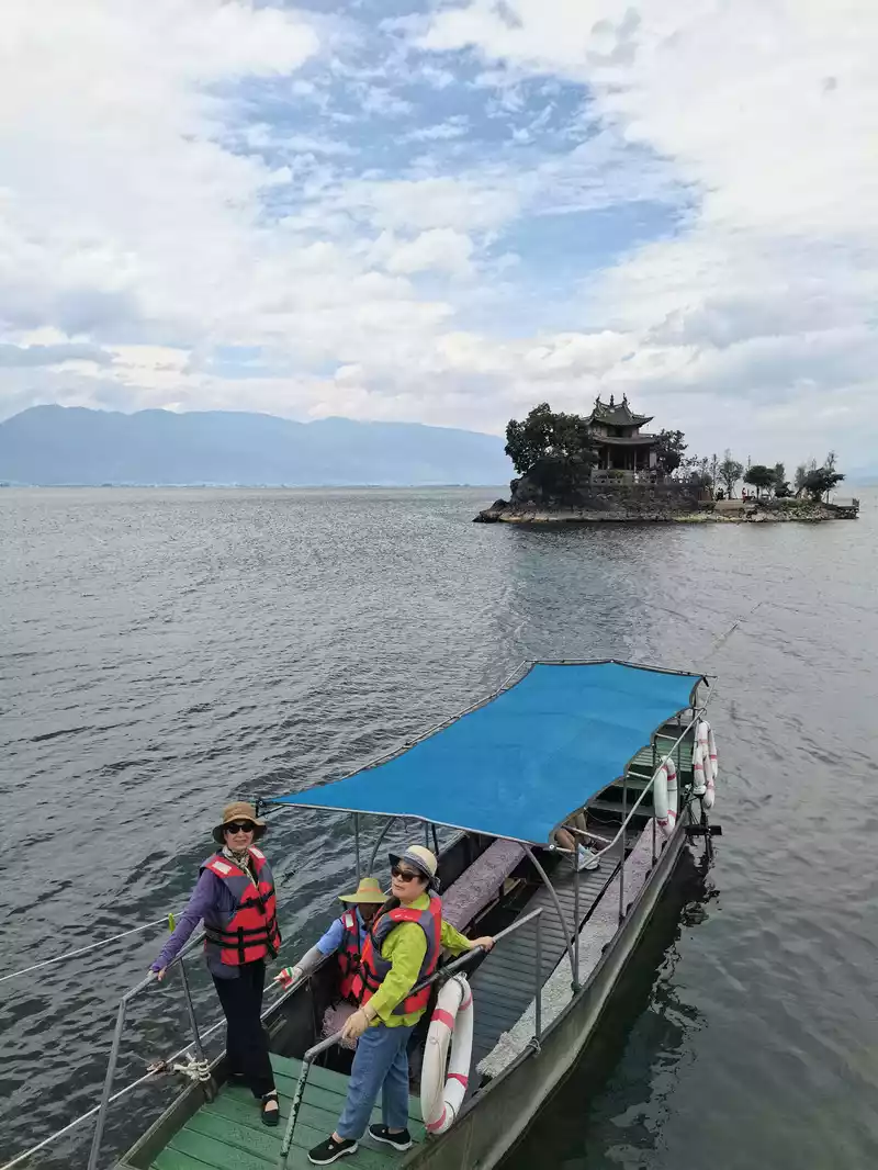 The Erhai Lake cruise ship also has a sign that reads: "Take you to a place with wind."