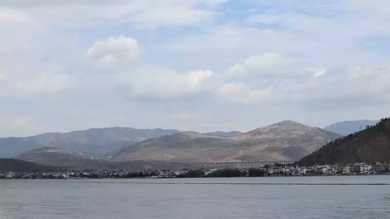 The sky was increasingly cloud-covered, and Cangshan Mountain on the west shore of Erhai Lake was even more shrouded in mist. However, these clouds were all white, and against the backdrop of the blue sky, they presented a magnificent beauty. During our two-day trip around Erhai Lake—no, it should be three days in Dali—the weather was always kind, with blue skies and white clouds, a clear and sunny sky, fully showcasing the beauty of Cangshan Mountain and Erhai Lake.