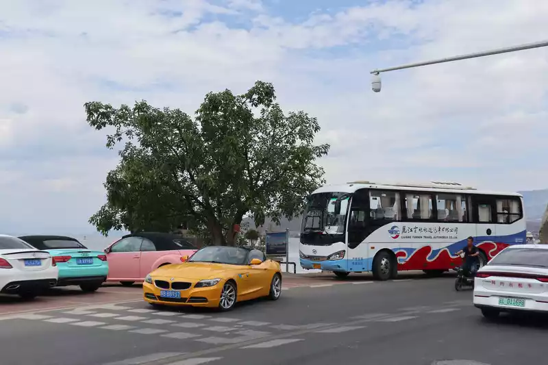 The Butterfly Spring Scenic Area is over 20 kilometers from Shuanglang Ancient Town. The road is quite busy, and from time to time you can see brightly colored convertibles speeding by, which is also a beautiful sight on the way around Erhai Lake.