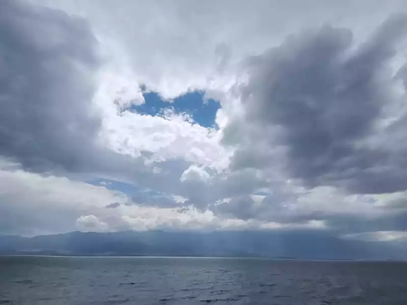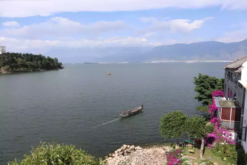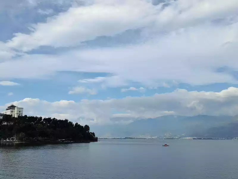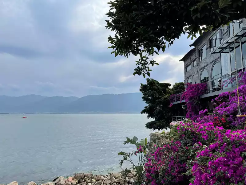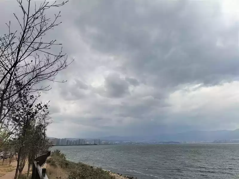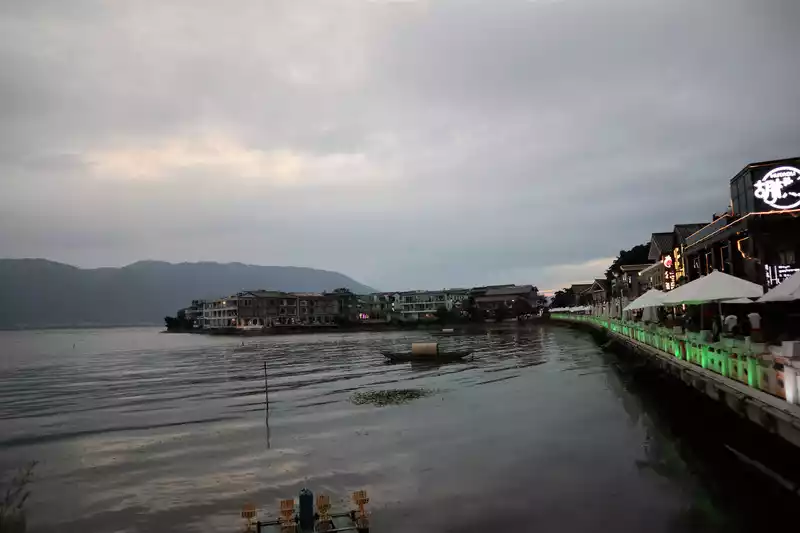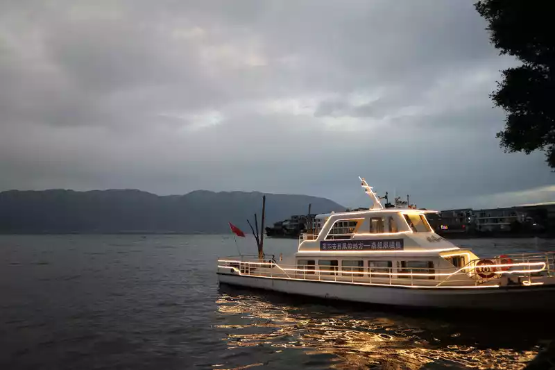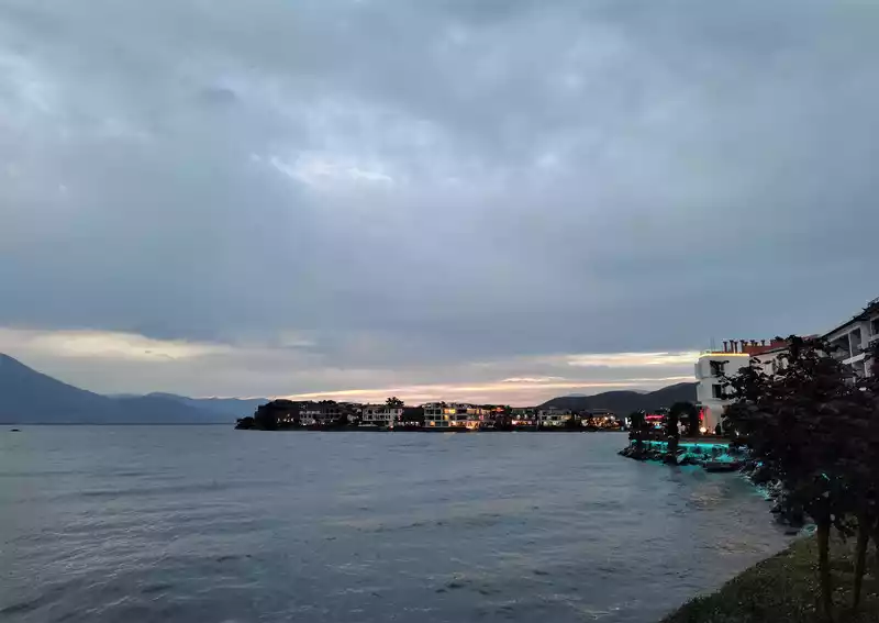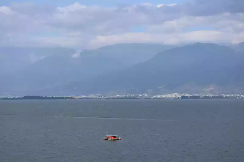 Dark clouds are gathering, the sky is gloomy, and it seems like it's going to rain. Fortunately, we have already completed our tour of Erhai Lake, so even if it rains, it doesn't matter.