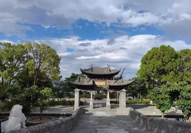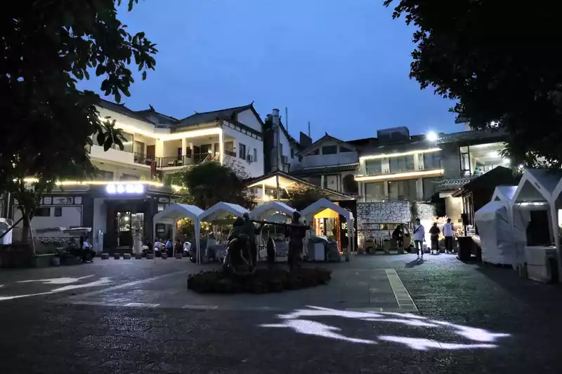 The history of Shuanglang Ancient Town can be traced back to the Nanzhao Kingdom of Dali during the Tang and Song Dynasties. Architectural features with Bai ethnic characteristics, such as eaves, screen walls, brick walls, and colorful paintings, can be found everywhere. The alleys are crisscrossed with stone paved streets, and various shops are scattered among them. Almost all of the coastal areas are homestays and inns.