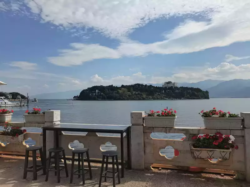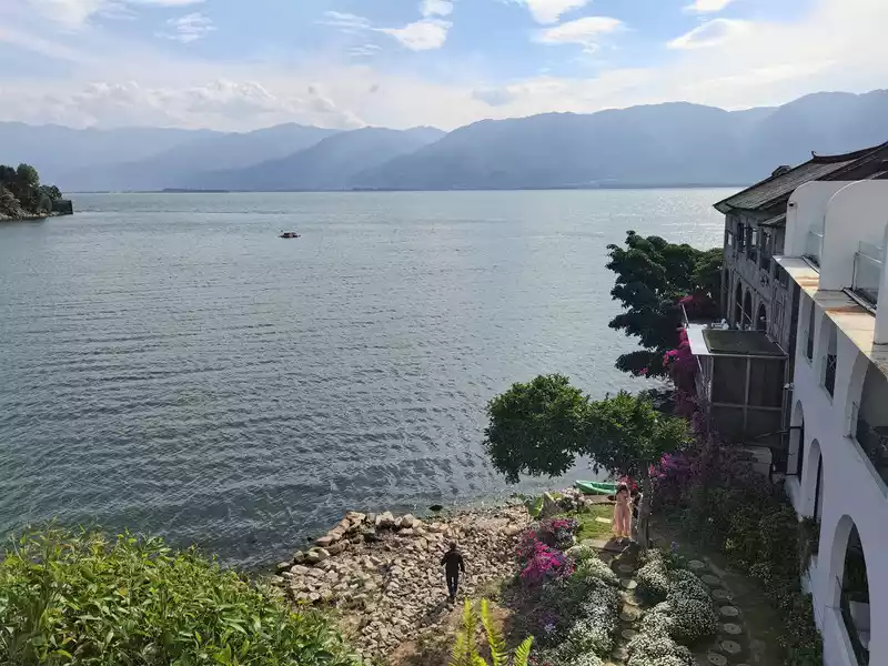 It's a shame I didn't take the time to sit on the unique terrace and coffee table in my room, sip tea, enjoy the view, and while away the hours, enjoying the romance and comfort. The wind was so strong yesterday afternoon that it was impossible to stay still. I have to go shopping this morning and will check out at 10:30 to continue my journey around Erhai Lake.