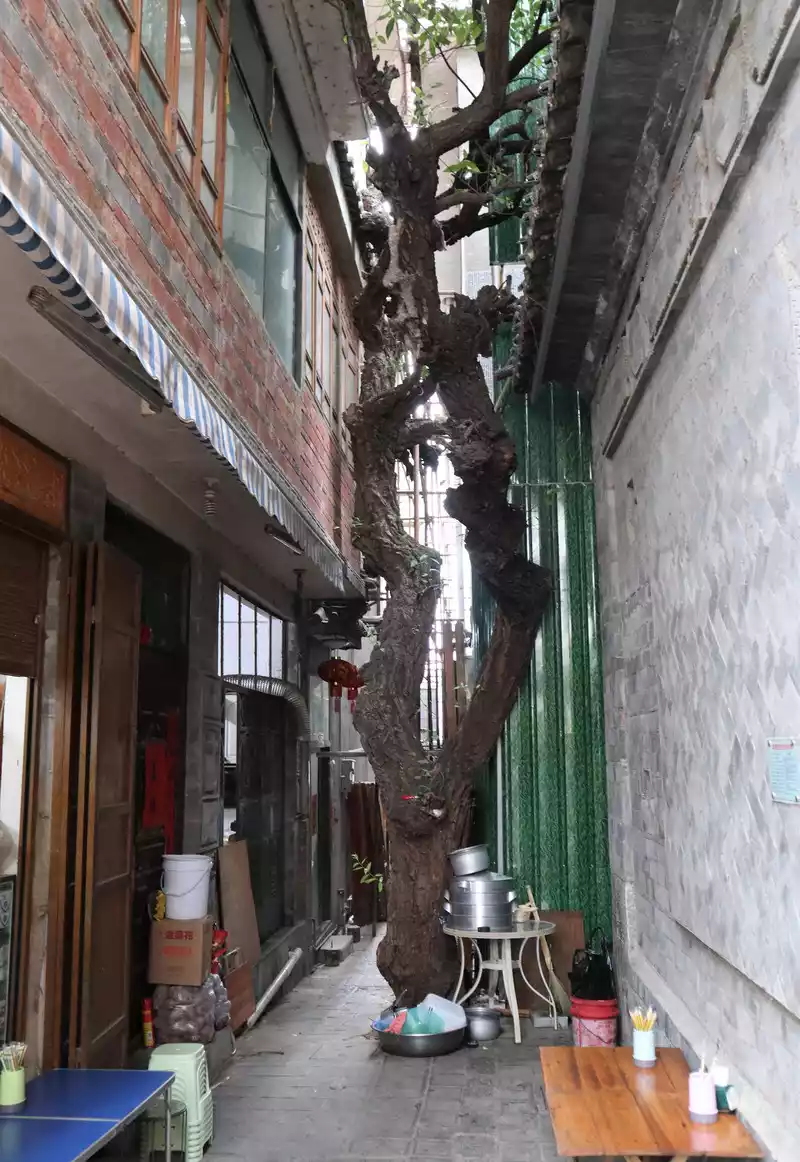 In the middle of the narrow alley, there is a large tree. Judging from the thickness of the trunk, it is quite old.