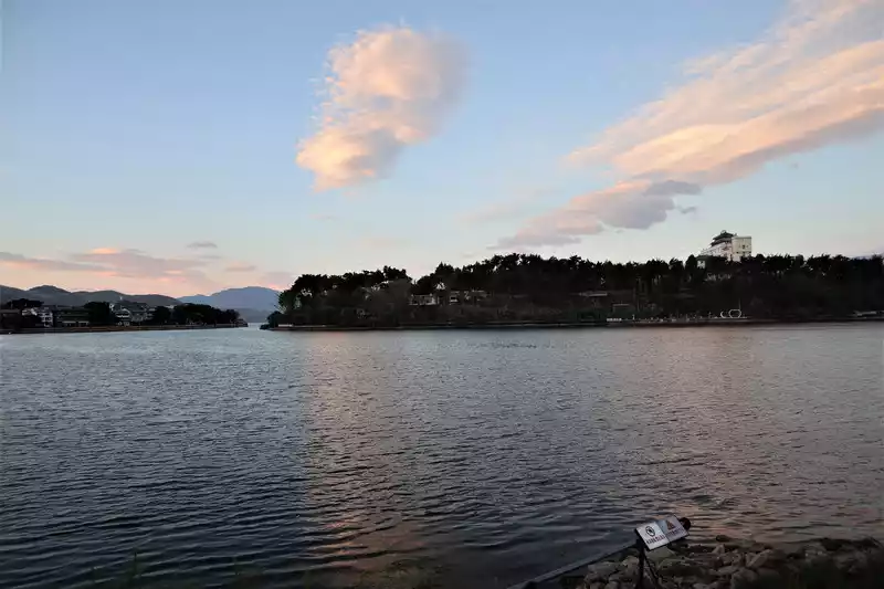 The sky was covered with clouds, and there were quite a few dark clouds. The light was poor, and the sea water was dark, which greatly reduced the beauty of the lake and mountains.