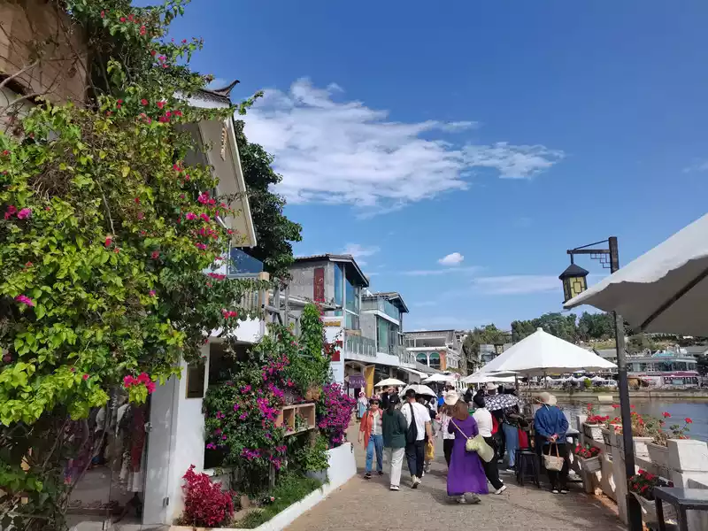 After more than ten minutes of walking through the ancient town, I was deeply impressed by the beautiful scenery along the way. The saying "Dali's scenery lies in Erhai Lake, and Erhai Lake's scenery lies in Shuanglang" is truly well-deserved.