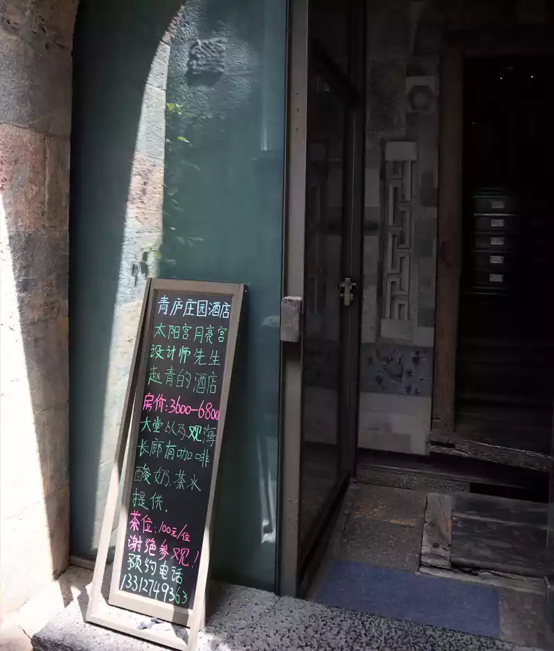 From this sign, we know that this is the Qinglu Manor Hotel (the room rate is marked on the sign), which should be next to the Sun Palace. The owner is Zhao Qing (a painter), who designed Yang Liping's Sun Palace and Moon Palace.