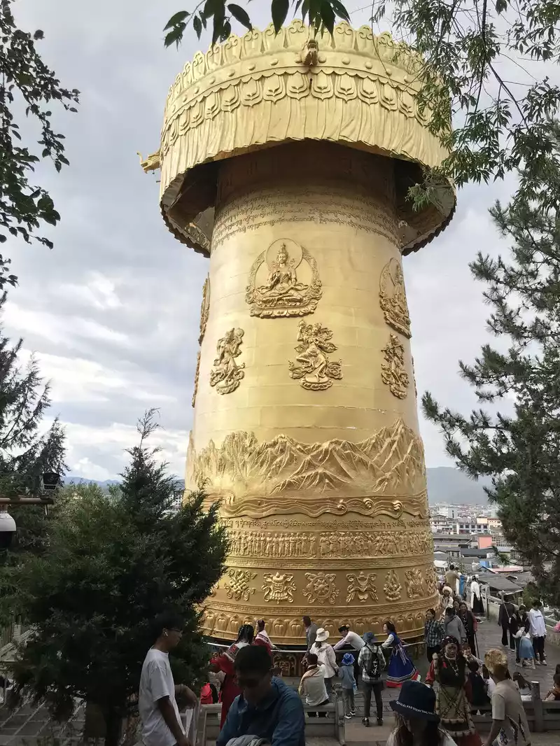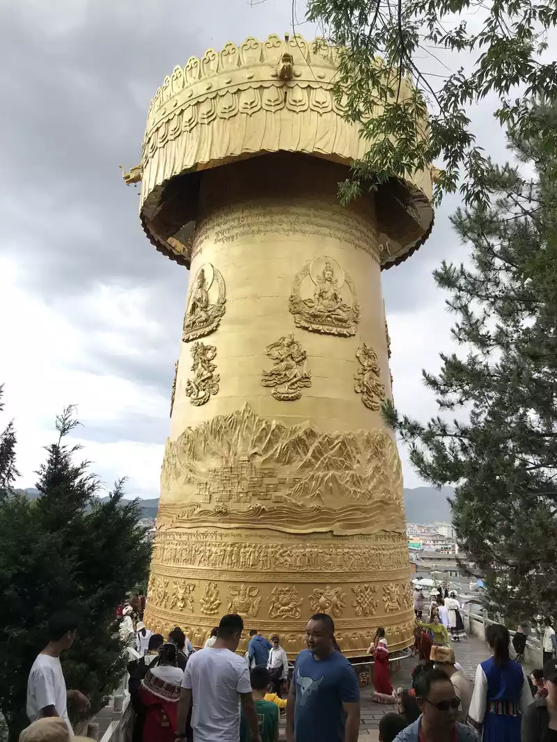 The world's largest and tallest golden rotating cylinder, it takes 20 to 30 people to turn it