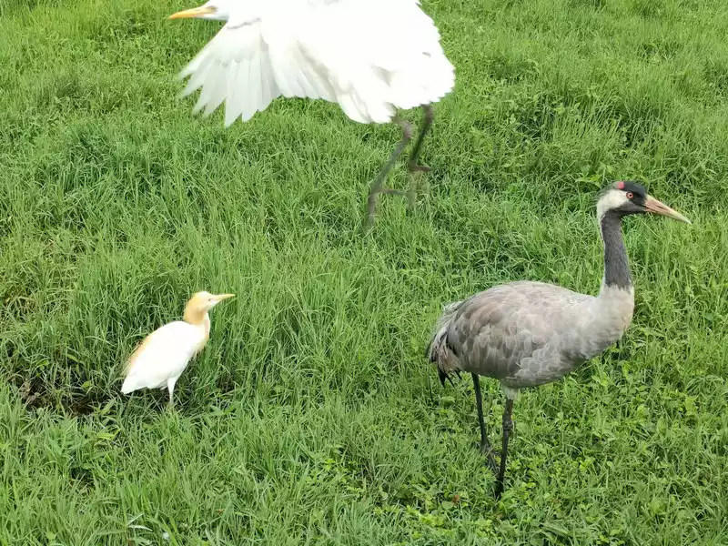 D3: Xishuangbanna Tropical Botanical Garden. Family games, rainforest adventure, and a night tour of the botanical garden. Accommodation at the Victoria Hotel. Day 4: Xishuangbanna Tropical Botanical Garden. Mission Challenge. Afternoon Dai Village Experience, Bonfire Party. Accommodation: Overnight at the Wanglian Hotel. Tours: [Sun River Forest Park] Of the three main areas we visited, this was my favorite because I had the rare opportunity to pet a red panda! The animals at the forest park are free-range, and while none are particularly aggressive, they are mostly vegetarian. You can get up close to the monkeys, but avoid getting too close. Interacting with them requires guidance from staff. While there aren't many species, the experience of seeing them through cages is quite unique. There were rhinos (which you could pet), slow lorises (very lazy, constantly lying in a tree), barking muntjacs (which looked like deer), macaques (we saw a baby monkey clinging to its mother for milk), giant salamanders, also known as spinulosa, white-cheeked gibbons (which came out and perched on the pavilion beams, looking down at us from above, their bodies all black with a white patch on their faces, resembling Peking Opera masks), white-naped cranes (which you could feed), black bears (two, two-year-old babies), and red pandas (which initially hid in a tree and refused to come down, but were lured down by the keepers with food and whistles. You could pet their fur, which was a bit rough and wiry, but super cute). The tour was guided by a guide who provided explanations along the way, and you learned a lot. Another activity was the jungle zipline. Non-slip shoes are recommended; it's not too difficult, but it does require some stamina. We did it in the rain, and several sections of the tightrope walk were slippery.