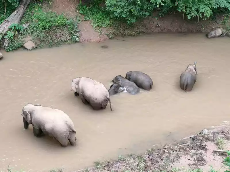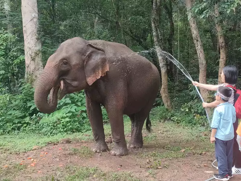 [Wild Elephant Valley] 1. Listen to the elephant father's class and tell the story of rescuing elephants; 2. Bath the elephants, walk the mountain path that elephants walk on, see elephants scratching themselves and defecating on the trees, and give the elephants a physical examination; 3. Enter the campsite and be lucky enough to see 6 wild elephants, including a 1-year-old baby elephant. We also saw two baby elephants fighting.
