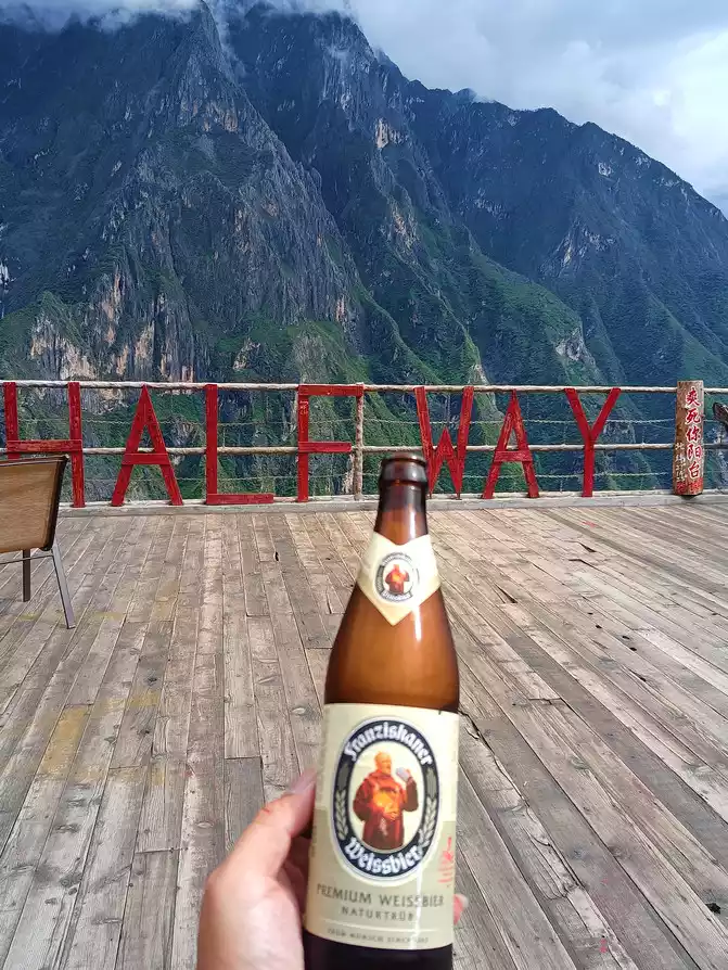 We got off the highway, crossed Songyuan Bridge, and had dinner at Yaomei Fresh Fish Restaurant on Xijing Highway (striped fish is a bit pricey). When we reached the Tiger Leaping Gorge Bridge (Tencent Maps; Amap doesn't show the name of the bridge), we were told that the scenic area was closed due to recent heavy rain and flooding, and we couldn't cross the bridge. (I later searched online and found out it had been closed since 10:30 AM, no wonder there wasn't a traffic jam.) We continued driving, crossed the bridge (Tencent Maps), stopped, and called the innkeeper, who said we could enter. We passed through three security checkpoints, and after being told to go to Shanmei or to speak directly with the inn, we were allowed through. They didn't even charge us for the scenic area entrance fee (I didn't enter the scenic area on both visits, but in 2019, I paid for it just because I passed by normally). Before the inn, there's a 2.4-kilometer stretch with a 350-meter drop (results may vary depending on the software) and a dozen steep S-bends on a concrete paved road. Fortunately, the car handled it perfectly, without a single setback. We navigated the turns with one hand, and the straightaways were like an amusement park attraction (the passenger kept an eye out for oncoming traffic). It was quite captivating. The inn has its own parking lot, which can accommodate six or seven cars. After settling in, we took advantage of the light rain and hiked back up the highway for about a kilometer, turning back to the "ice powder" area as a warm-up. The misty, post-rain Yulong and Haba peaks presented a uniquely beautiful scene. Everyone was in high spirits and decided to stay for the 10-day journey. Opposite are Yachajiao Manor, Tea Horse Inn and Shanmei Inn.