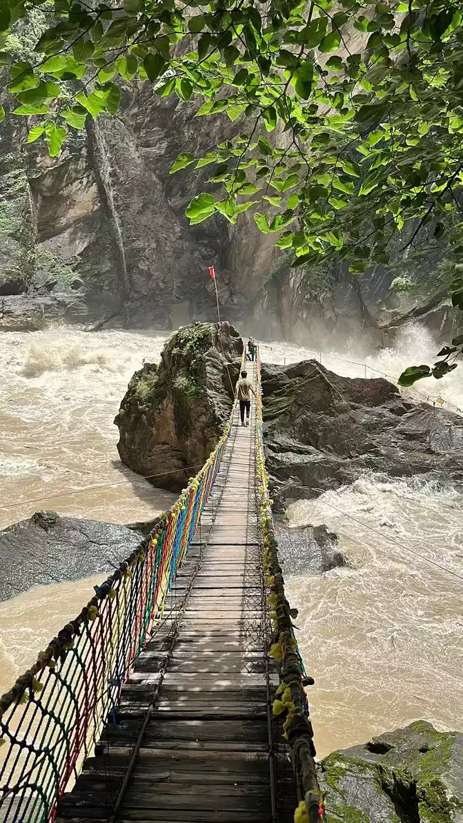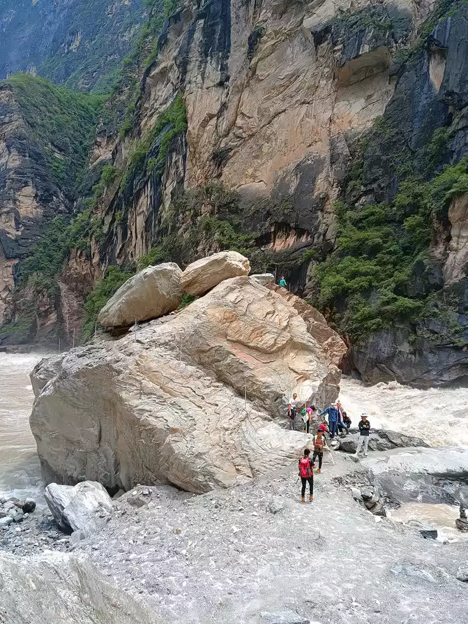 On the 8th, after breakfast, we set off for Mr. Zhang’s Inn and hiked the canyon route (15 per person. There are three routes that lead down to the canyon, the other two being the “ladder to heaven” route and the “line of sky” route). We took photos at the large rock in the river at the bottom of the canyon. The water level in the closed scenic area was very turbulent, so we arrived at the perfect time, and our drone came in handy.