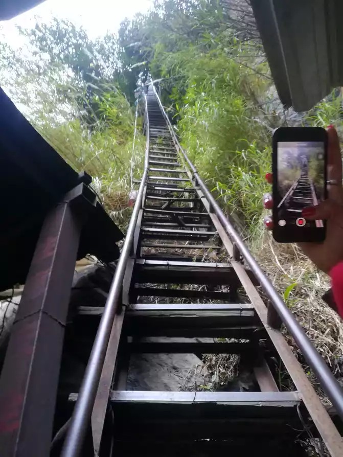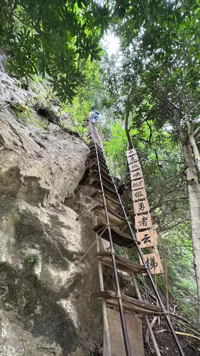 There's a small suspension bridge at the bottom of the valley that connects to the "Sky Ladder Route." There's an additional fee to cross it. We told him we'd just cross the suspension bridge and return the same way, so the fee was only NT$5. Crossing the suspension bridge to the large rock in the river cost another NT$10. (We'd hiked this once during the 2019 Spring Festival, and the water wasn't as high as this time. I highly recommend it. My kids didn't dare to do it that year, so we'll do it this time.) On the way back, we climbed the 168-step Warrior Cloud Ladder (NT$10 per person). The owner of the ladder was actually the driver who had picked us up back in Shanmei. The ladder was steep, and since we were running low on energy at the end, the young man was left behind, and we had already lost sight of anyone. Thankfully, the couple encouraged each other and slowly climbed, and we made it. This section of the valley floor hike took about 5 hours (including plenty of time for photos). The level climb was short, but the drop was quite steep, pushing my physical limits.