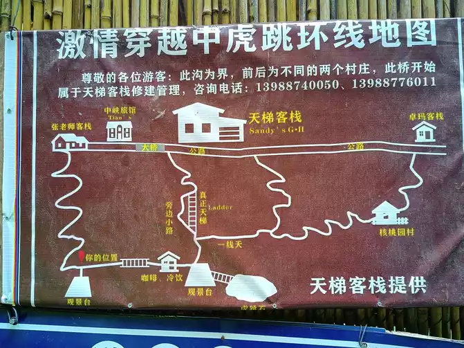 Map of the High Road and Canyon Hiking Route (Photo taken at Teacher Zhang's Inn)