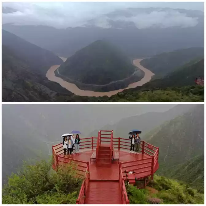 Watching the "Omiga" bend of the Jinsha River in the rain