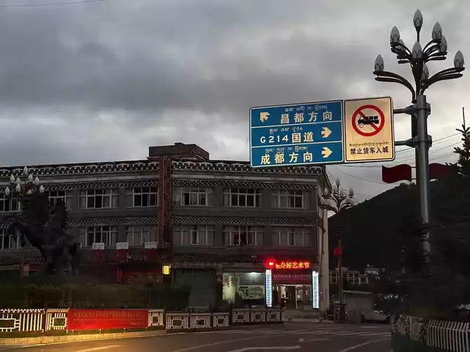After driving for half an hour, we crossed the Zonianong Bridge and saw the abandoned Zonianong Suspension Bridge and zip line. I had been eyeing this place on the map for a long time and this time I made a special trip over it. I was not disappointed, it was spectacular. Not far ahead is the intersection to Yubeng. When I'm on my phone at night, I always keep an eye on local videos on Tik Tok, where I can find a lot of useful information. I saw a mudslide on the Gushui section of G214 last night, and they said repairs would be completed that evening. We passed through the area at noon today, and it was one-way, so we were lucky enough to be there for less than half an hour. We entered Mangkam and Tibet at 1:30! Just ahead is the Qamdo Public Security Checkpoint in Tibet, where you can get in with your ID.