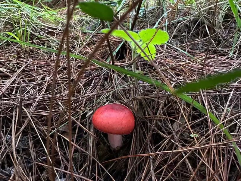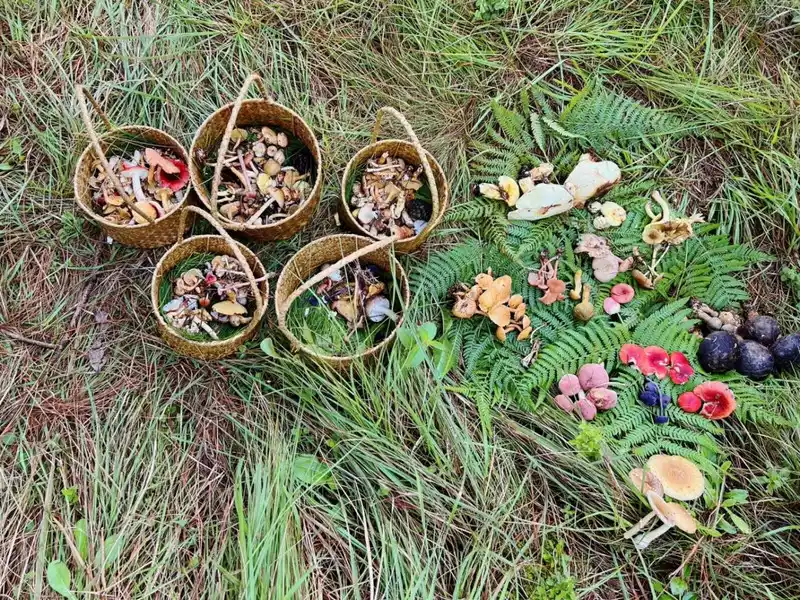 With anticipation, get up early and arrive at the designated place half an hour early. The weather was beautiful, and the team leader said that this was the only sunny morning in recent days.Mushroom picking is so interesting, walking through the mountains and forests, crossing streams, jumping over hillsides, pushing aside the grass, rummaging under the trees with open eyes, the joy of searching and the joy of discovery will make people feel cherished from the depths of their hearts, this is the gift of nature, how beautiful.