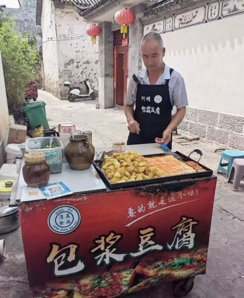 There is a large area of water lilies next to the Xizhou Justice Gate, which is very beautiful. Admiration went to the flower record to buy flower cakes. Roses outside the door and bees flying back and forth. p3-4 In the alley not far from the entrance, there is a pulp tofu made by an uncle, which is delicious!! It smells good!! I just saw two young couples around and tried it, but I didn't expect it to be really delicious!! Eat it hot! But hot mouth!