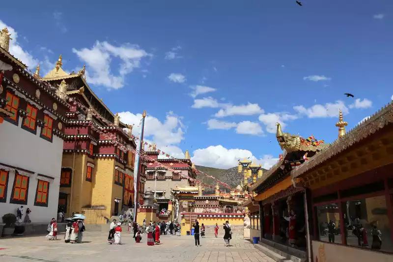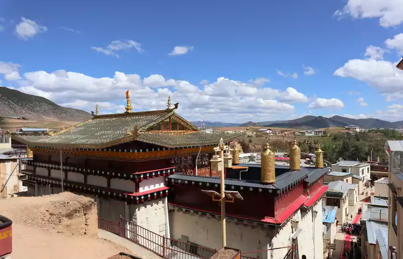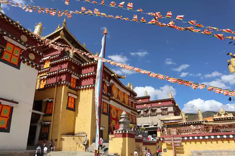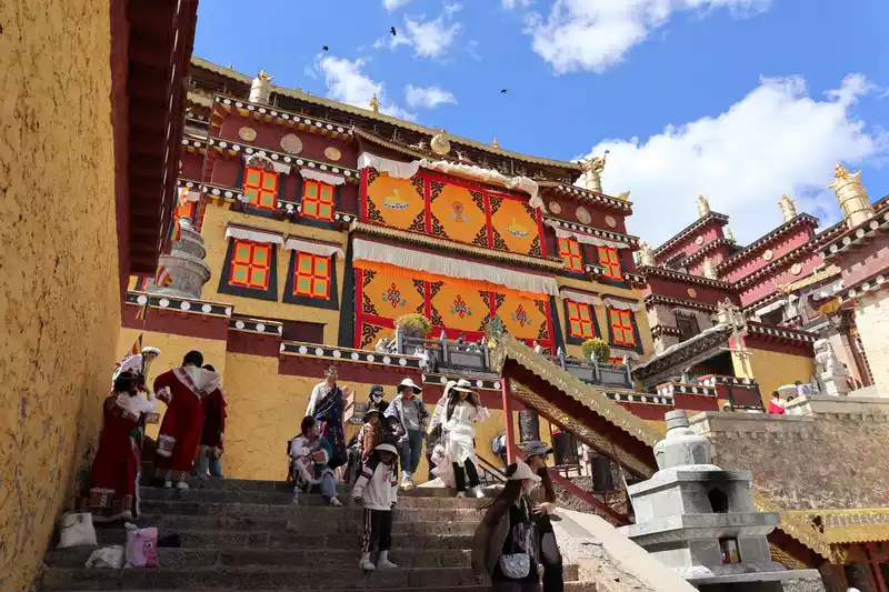 Ganden Sumtseling Monastery, a famous tourist attraction in Shangri-La, is about 5 kilometers from the city center.