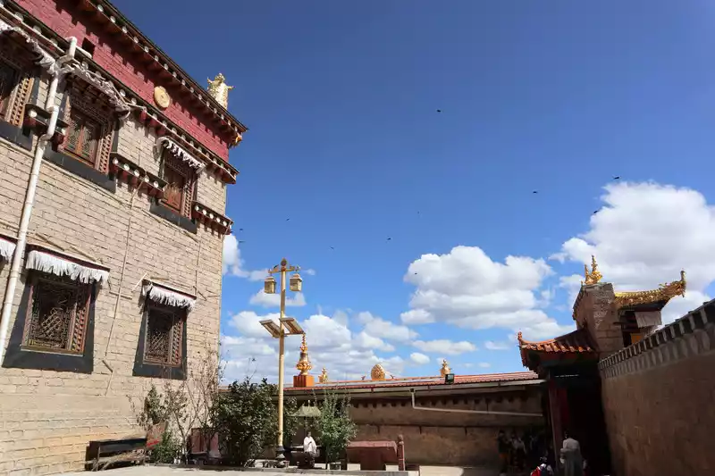 The temple architecture embodies the essence of Tibetan religious culture. The buildings are magnificent and the shapes are colorful, which is amazing.