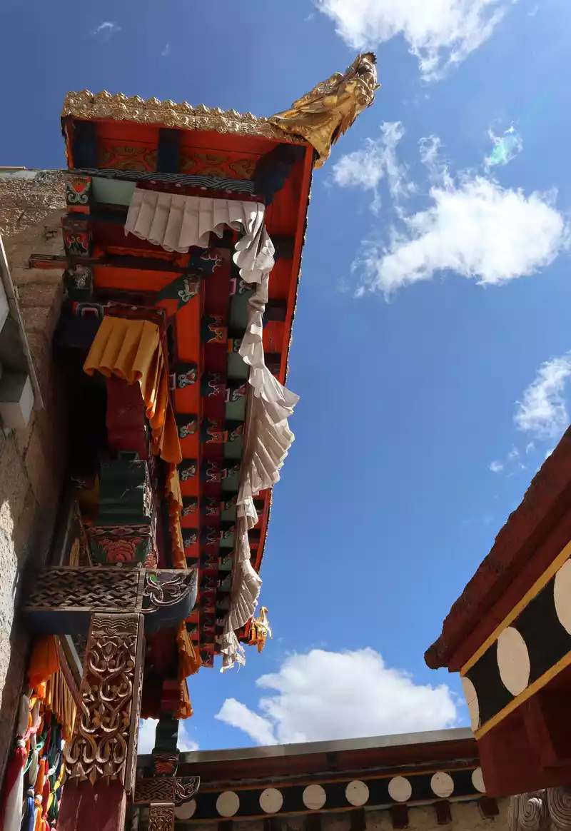 Below the main halls of Zhacang and Jikang, there are eight Kangcans: Dongwang, Zhaya, Duoke, Jidi, Xiangcheng, Zhuo, Yangtang and Rongba, representing the eight-petal lotus, which symbolizes the Buddhist holy land of Songzanlin Monastery, which is detached from the world and pure and auspicious.