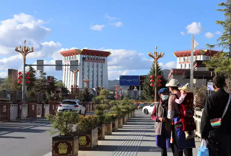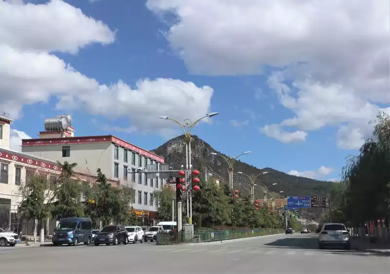 The ancient city's architectural layout is like an eight-petal lotus, with Moonlight Square at its center and quaint Tibetan wooden houses surrounding it. It is the best-preserved and largest Tibetan residential complex in China.